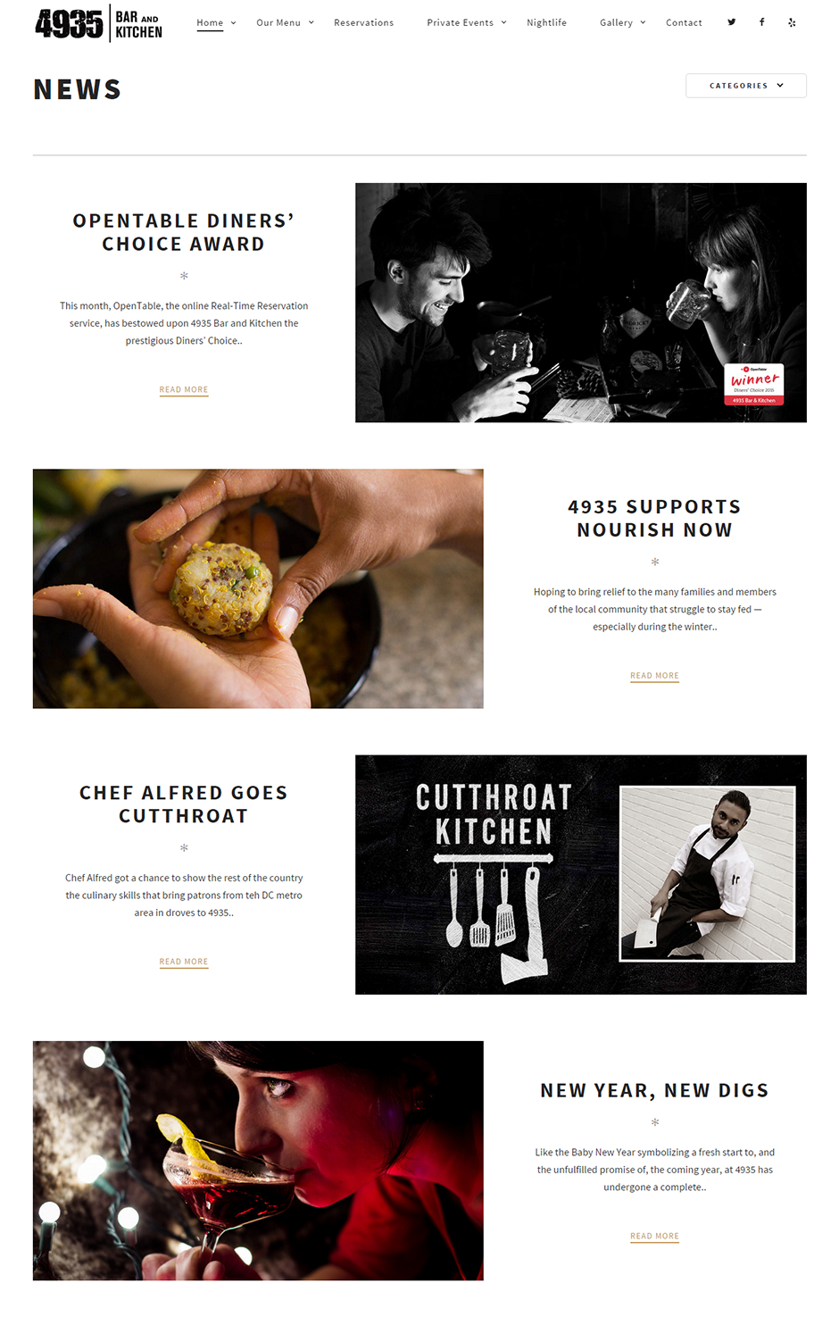 4935 Bar & Kitchen does it all; bar, restaurant, catering company, AND nightclub, and so they needed a website that did it all! Our web team went right to work in designing a website that encompassed all of these concepts. We integrated Google Virtual Tours, Opentable Reservations, Gather Bookings and a host of other technologies, all wrapped in a modern, elegant and complete UI.