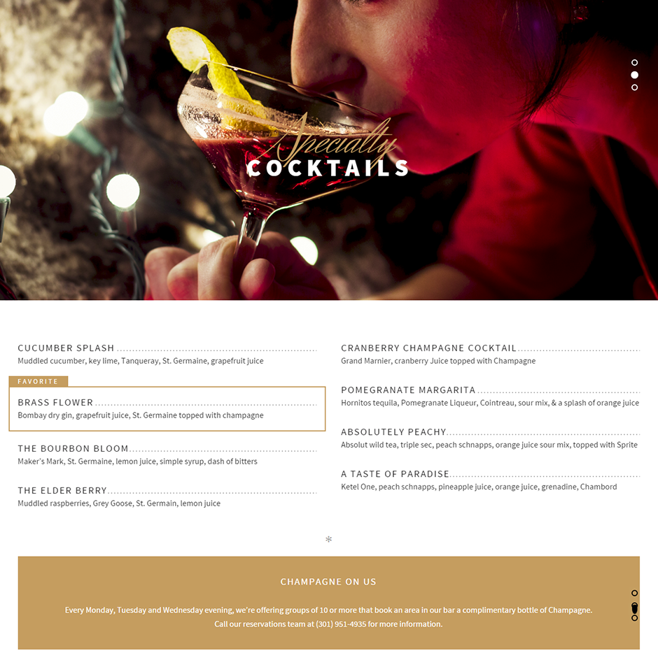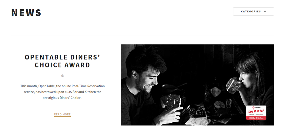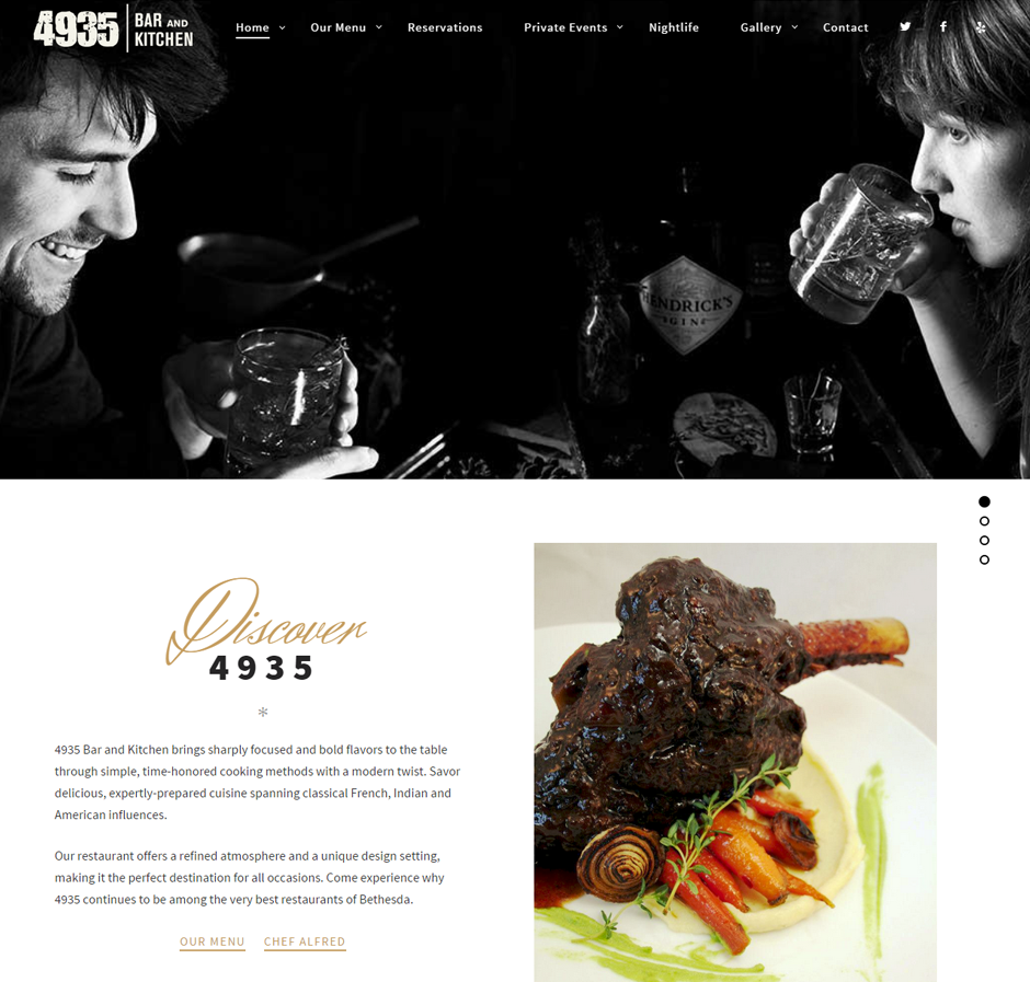 4935 Bar & Kitchen does it all; bar, restaurant, catering company, AND nightclub, and so they needed a website that did it all! Our web team went right to work in designing a website that encompassed all of these concepts. We integrated Google Virtual Tours, Opentable Reservations, Gather Bookings and a host of other technologies, all wrapped in a modern, elegant and complete UI.