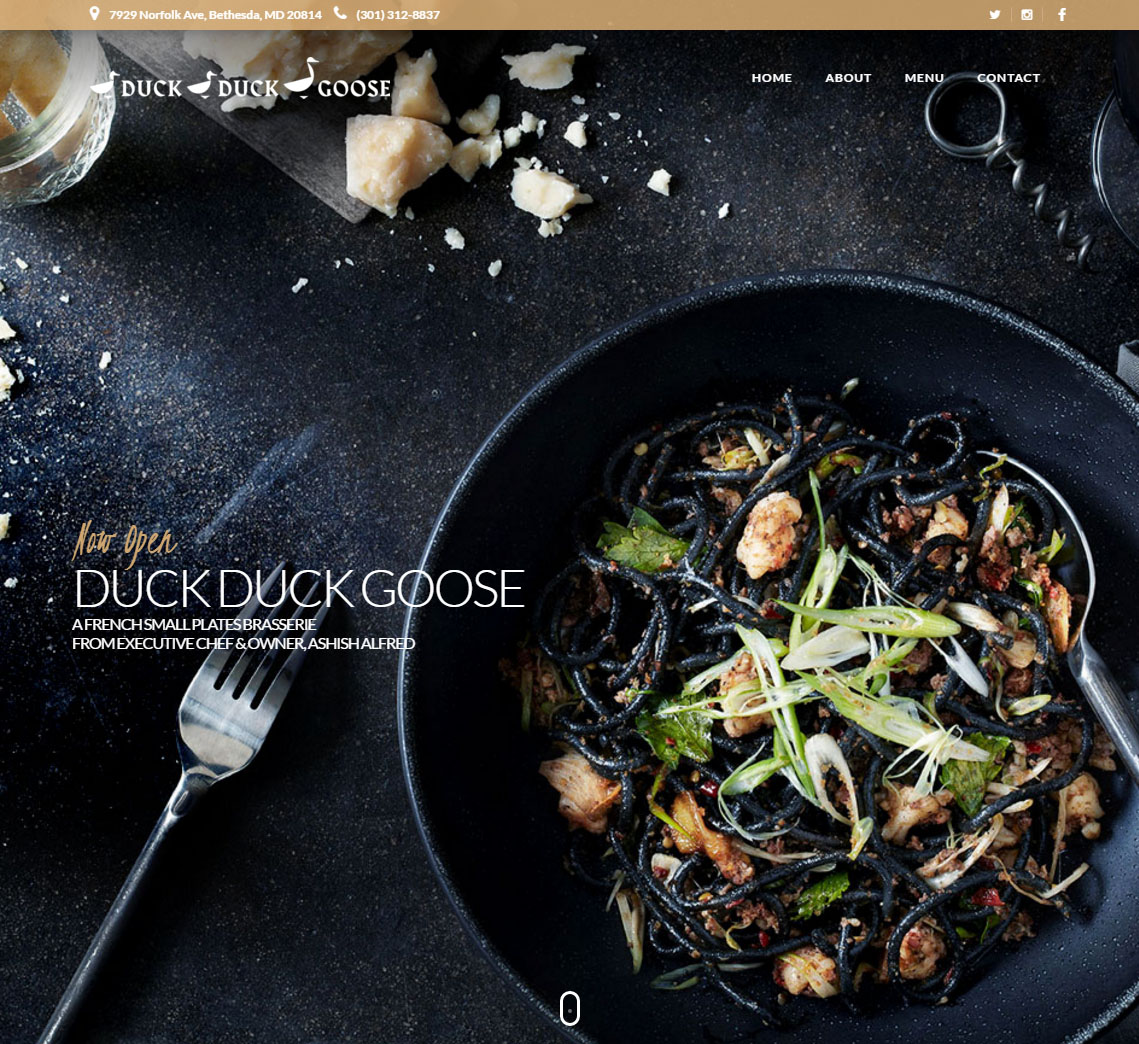 Duck Duck Goose, a brand new concept from the Alfred Restaurant Group was aiming to make a splash in the downtown Bethesda food scene. As such, the owners wanted an elegant, clean and accessible site that reflected their venue and food. Meridian worked closely with their staff throughout the restaurant's build-out to ensure that the site was a cohesive marketing extension of their brand.